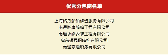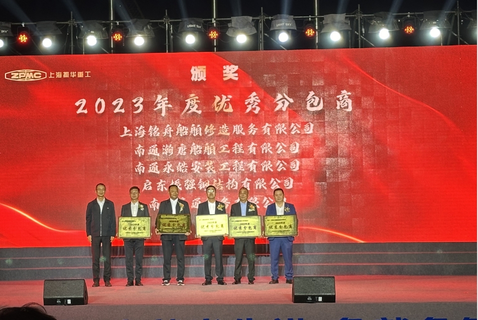 5月8日晚,振華啟東海工成立10周年職工歌詠比賽暨2024年“六比六創(chuàng)·三型一流杯”奪標勞動競賽啟動儀式在公司行政樓廣場隆重舉行。活動中,公司對2023年度“優(yōu)秀分包商”“優(yōu)秀項目部”“優(yōu)秀團隊”“優(yōu)秀干部”“優(yōu)秀員工”進行表彰。 南通豪通船務(wù)有限公司榮獲2023年度“優(yōu)秀分包商”稱號。